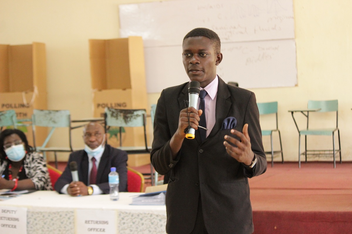 The Incoming MMUSO President addressing Parliamentarians after being declared the winner.