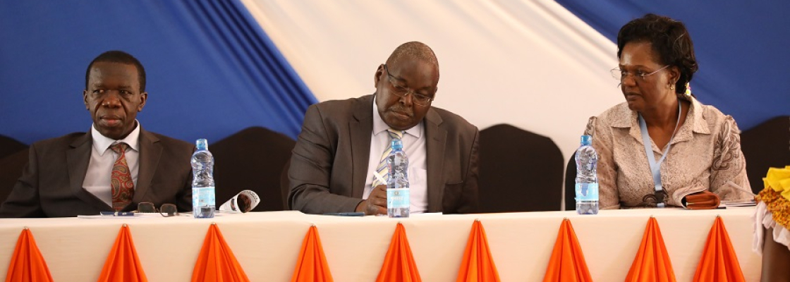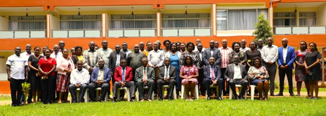The Vice Chancellor, Prof. Solomon Shibairo, gives his remarks during the KUSU Grade 5 training at Kisumu Hotel.