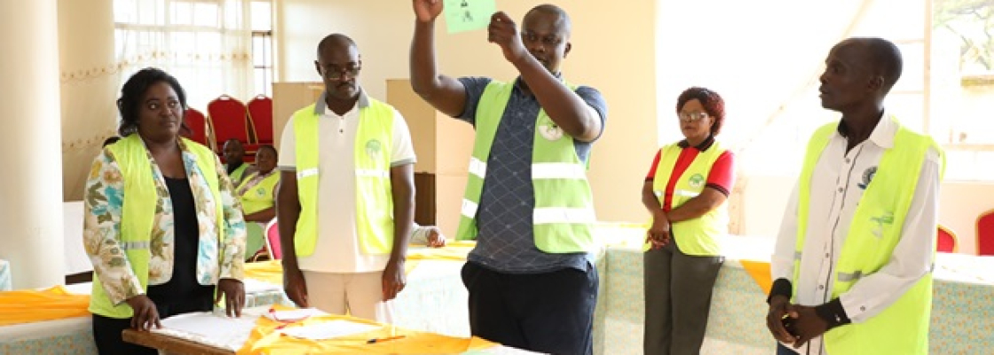 Mr. Moses Onyango (Presiding Officer) during the counting of votes.