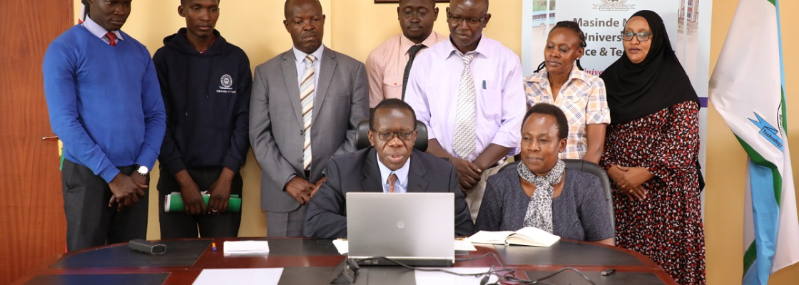 The Vice-Chancellor Prof. Solomon Shibairo presiding over the signing ceremony.