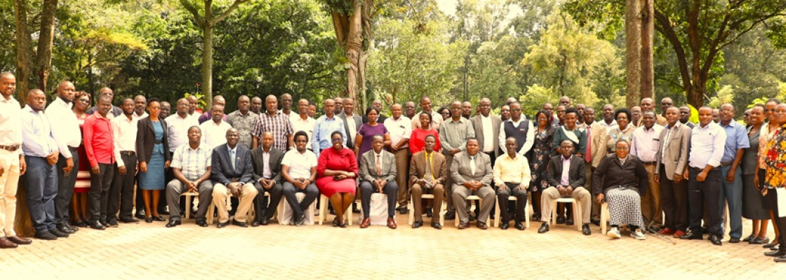 The Deputy Vice Chancellor PRI, Prof. Charles Mutai (seated at the center), DTB team together with the 1st cohort of students trained.